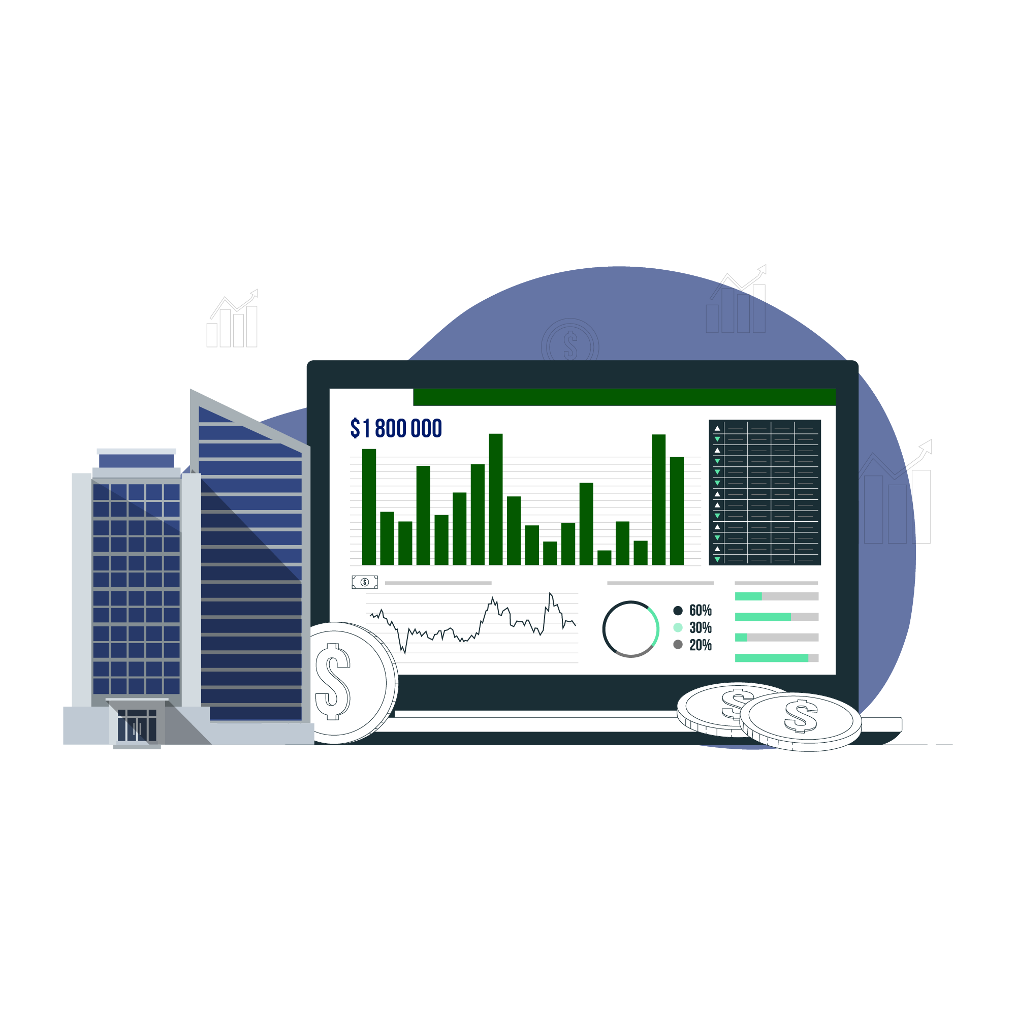 Analyzing of property estate market, finding potential property with significant income growth and development for your direction.